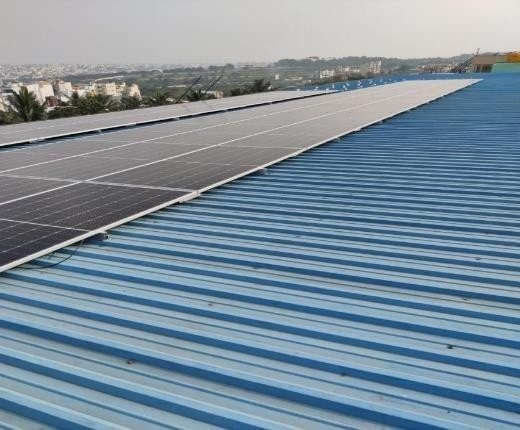 | Industrial Customer, Peenya, Bangalore | 80 | Longi (545 Wp, Mono-PERC) | Delta (1 x 70 KW) | 9000 – 11000 | 67,500 | Feb-2022 | 3,96,000 | 29,70,000 |