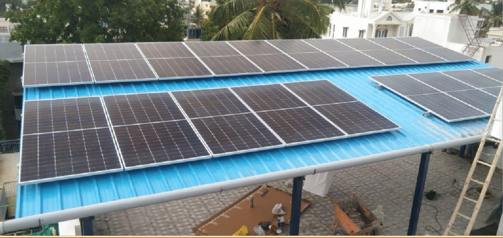 | Industrial Customer, Peenya, Bangalore | 100 | Panasonic 550 Wp, Mono-PERC | SunGrow (2 x 50 KW) | 10,000 – 12,000 | 75,000 – 90,000 | Apr-2023 | 300,000 | 22,50,000 |